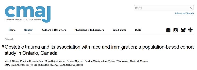 New PERL publication showing maternal race and immigration linked to obstetric trauma in Canada