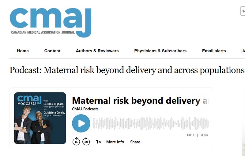 Tune into this CMAJ podcast highlighting PERL's work on the SERENE study featuring Maya Rajasingham as well as Irina Oltean's research on racial disparities in obstetric trauma.