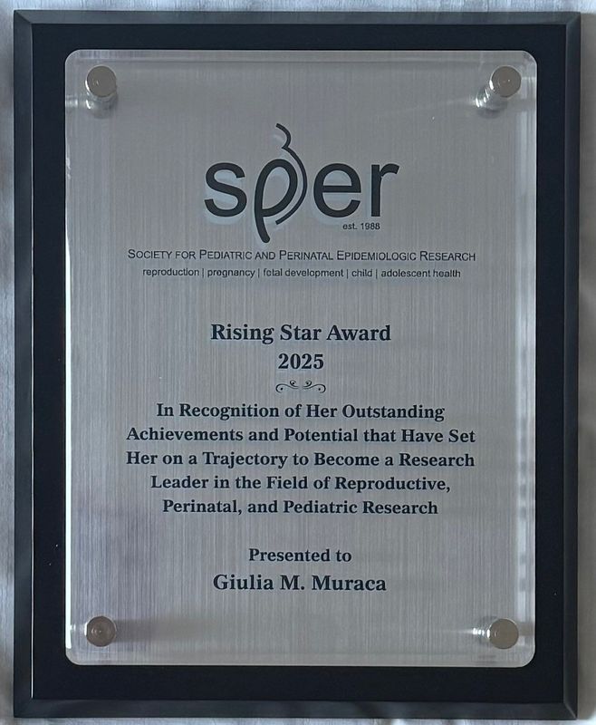 Dr. Giulia Muraca awarded the Society for Pediatric and Perinatal Epidemiologic Research Rising Star Award!