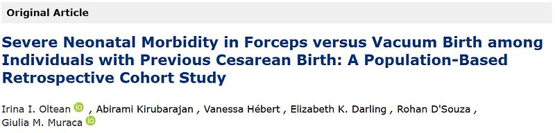 Hossein Pour P, Rajasingham M, Muraca GM. Risk of cervical laceration in forceps versus vacuum delivery: a systematic review and meta-analysis. Acta Obstet Gynecol Scan 2004; 00: 1-10. doi:10.1111/aogs.14969.